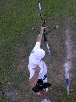 Le Tir à l' arc ici à Joao Pessoa! Il y a toujours du vent mais on s 'habitue! Le problème est que des fois il pleut et alors on a l' impression d' être tombé dans la piscine!!